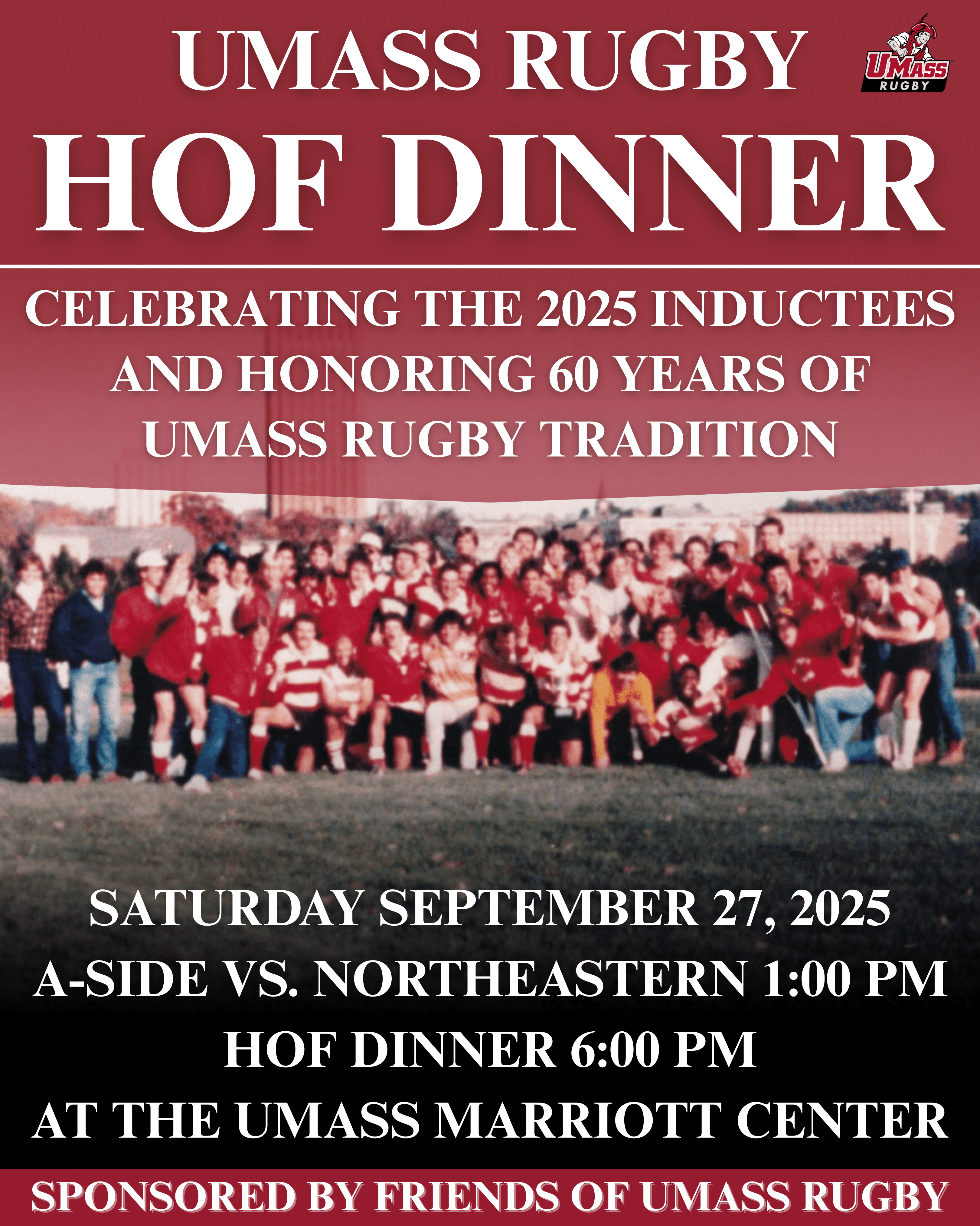 Tickets will be available until September 17th. Join us as we celebrate the 2025 inductees and honor 60 years of UMass Rugby tradition.
